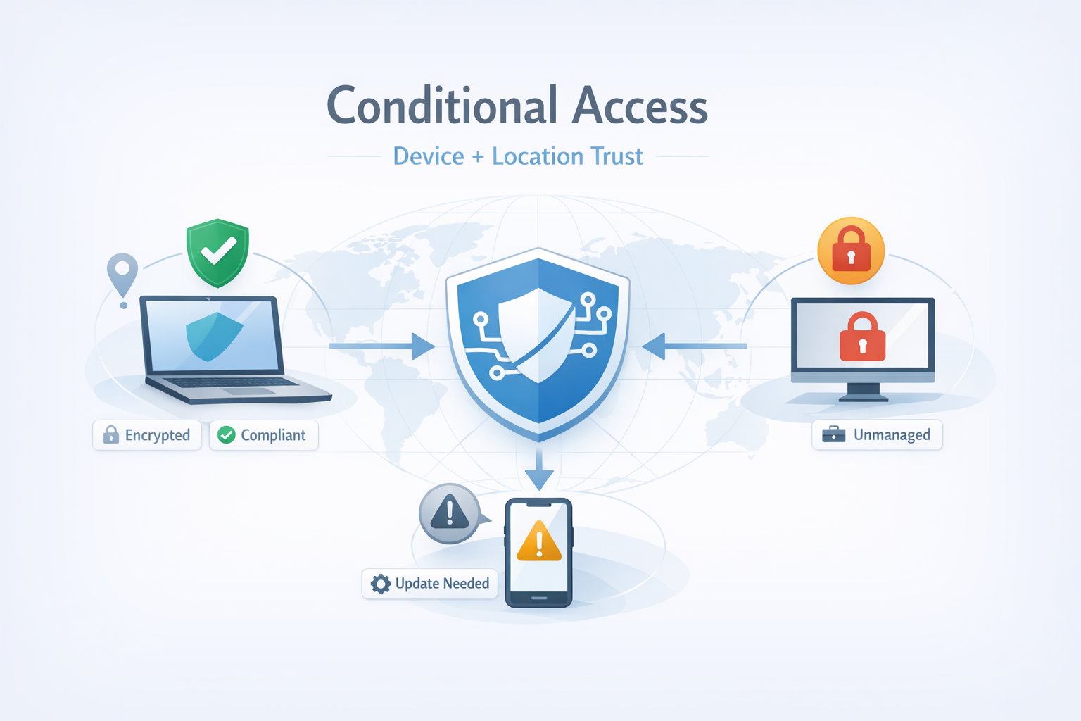 Conditional Access addresses these gaps by enforcing contextual authorization at runtime. The result is stronger resistance to credential theft, unauthorized access, and policy drift.